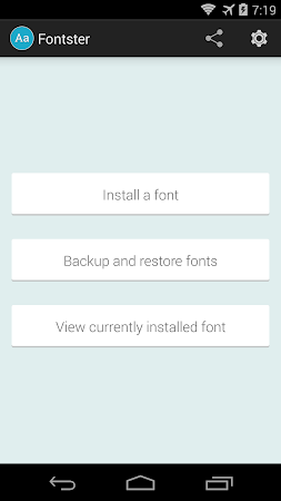 : Fontster allows you to easily change the system wide fonts on your Android device within a well designed Holo UI. In order to use this app, your device must be rooted.What makes Fontster special is that it will replace all font styles used by the operating system. Unlike other font installers that only replace a few of the font styles, Fontster will change all styles resulting in a consistent look across all text. This means that practically all of the typed elements throughout your devices UI will be changed to your desired font, including the keyboard, digital clock widget, web pages etc.